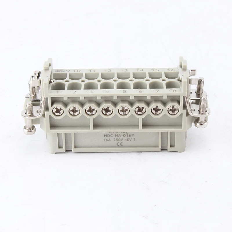 У поређењу са ХЕ-016, ЦХТАР-ов издржљиви 16А 10 Пин Инсерт Хеави Дути конектор је 16-пински мини верзија. Може радити у мањем простору. Обично се склапају заједно са алуминијумским кућиштем ХА-016. Направљени су од ПЦ-а високе чврстоће и унутра имају месингане посребрене игле. Има 16 пинова повезаних са 16 жица. Наша фабрика се налази у граду Иуекинг, провинција Зхејианг, Кина. Производимо конекторе за тешке услове рада више од 10 година и имамо преко 15 година искуства у извозној трговини. Радујемо се што ћемо постати ваш поуздани дугорочни партнер у Кини.