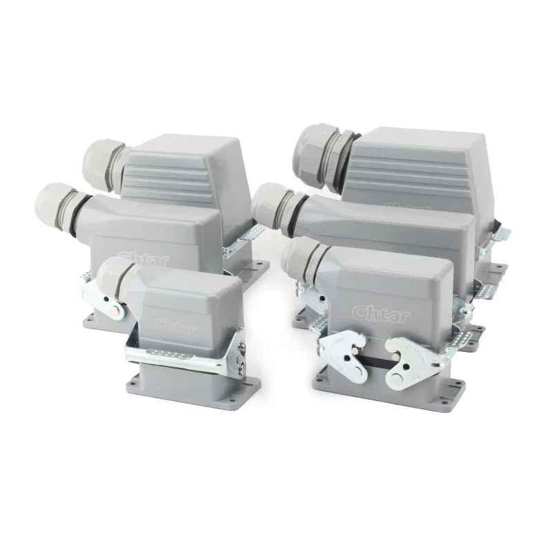 Издржљиви 24-пински АГ конектори за тешке услове рада који је дизајнирао и производи ЦХТАР погодни су за 24-пинске ХЕ, ХД, ХЕЕ, ХДД и друге конекторе за тешке услове рада. Конектор је направљен од легуре алуминијума и обложен сивим прахом РАЛ7037. Његова радна струја је 16А, радни напон је 500ВАЦ, опсег радне температуре је -40℃ до +125℃ (-40℉ до +257℉), циклуси укључивања и искључивања су 500 пута, а степен заштите је ИП65.