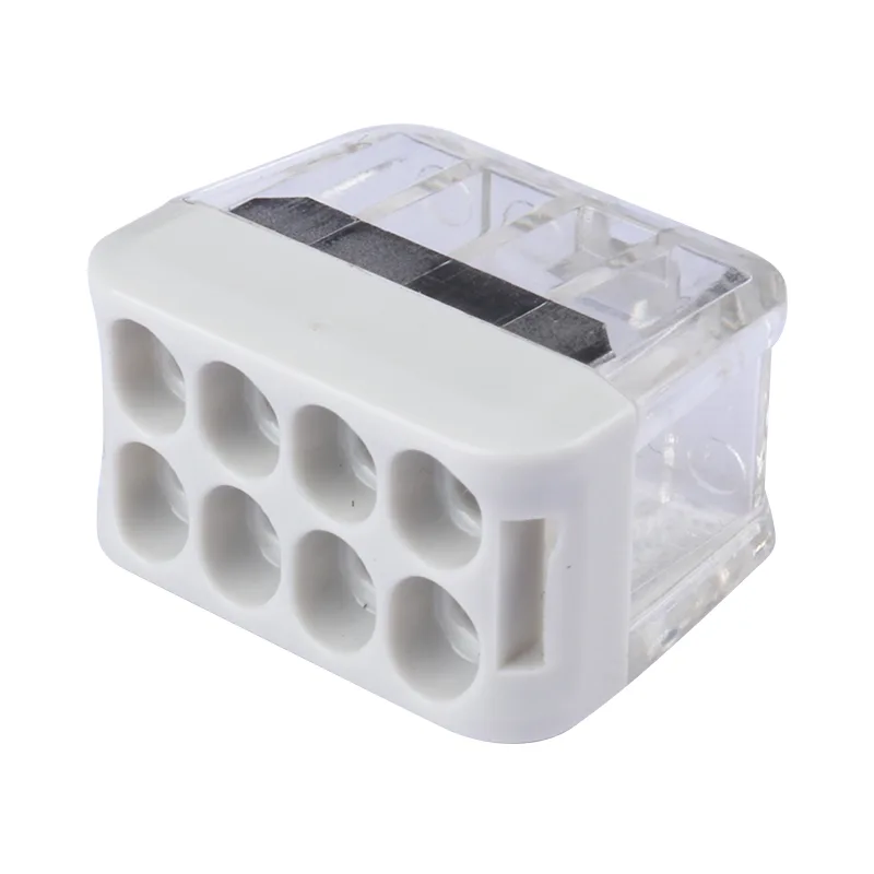 2П 3П 4П 5П 6П 8П брзи конектори за пролазне жице без полуга се користе за осветљење и повезивање жица у утичницу и утикачу. Брзи жичани конектори су безбедни производи за жичану везу, одржавање које се лако повезује да бисмо уштедели радно време и трошкове рада.