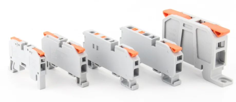 Брзи конектори жице за спајање на дин шину са полугама су добро познати конектори жице за утискивање и могу се монтирати на дин шину. Дизајнирани су да безбедно спајају различите количине чврстих или упредених бакарних проводника за електричне прикључне уређаје. Њихова основна функција је да обезбеде поуздано, трајно и бесплатно спајање електричних инсталација за одржавање.
