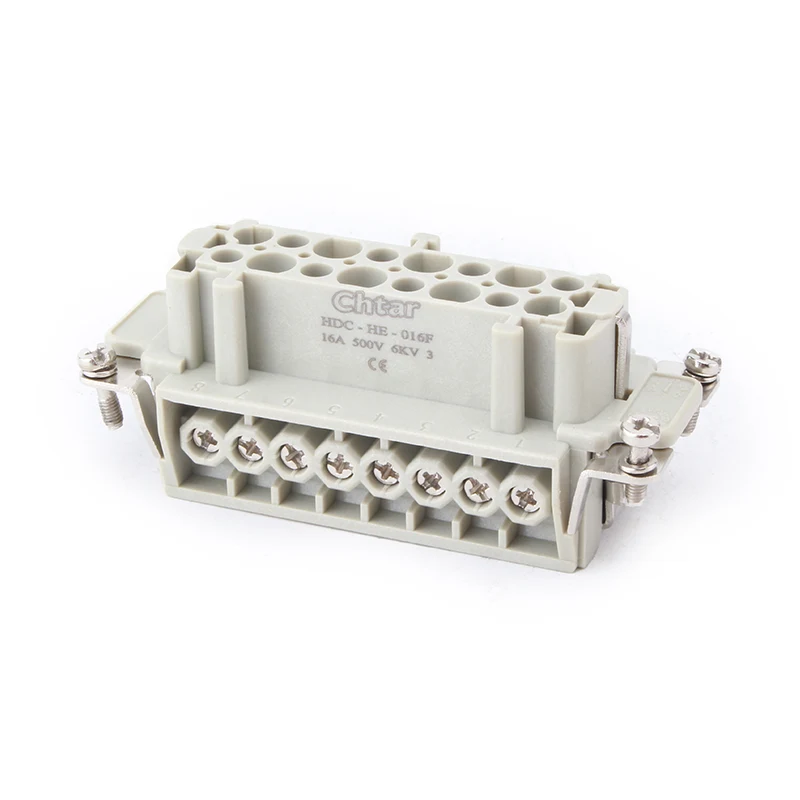 ЦХТАР је произвођач М/Ф 16 Пин Инсерт Хеави Дути конектора и разних типова конектора који су у складу са глобалним развојем. Наша фабрика се налази у Иуекингу, у близини Нингбоа и Шангаја. ЦХТАР има преко 10 година искуства у производњи и извозу, а извози у земље широм света. Зато што наши производи имају велику предност у цени, добру постпродајну услугу и успоставили су дубоко поверење код купаца!