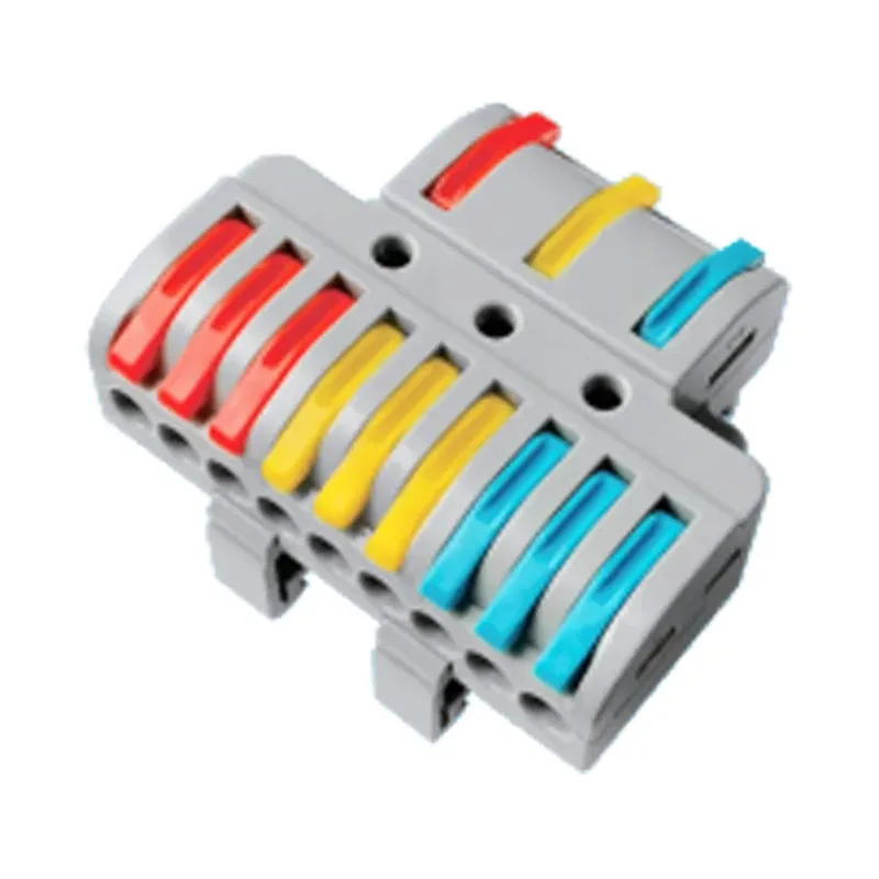 4мм2Брзи конектори за спајање жице типа са више улаза и излаза на дин шину се широко користе за повезивање жица у индустрији и системима осветљења. Брзи конектори за жице су ефикасни производи, љуска склопа за одржавање дин шине подржава добро функционисање у електричној табли, слободни спој дизајниран да помогне електричарима да уштеде значајно време за инсталацију на лицу места.