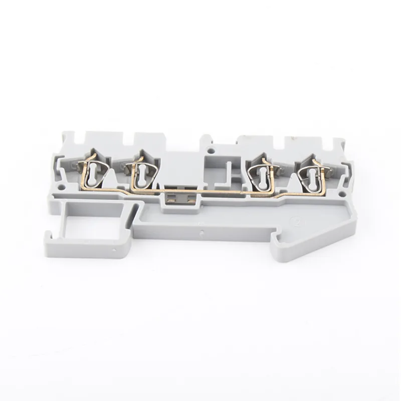 СТ2.5 КУАТТРО Спринг Дин шине терминални блокови су уређаји за електрично повезивање који се обично монтирају на шине унутар контролних ормара или опреме за брзо ожичење и одржавање. Прикључни блокови су обично опремљени изолационим материјалима и физичким изолационим структурама како би се спречили кратки спојеви, електрични удари или лабаво ожичење, чиме се повећава безбедност система.
